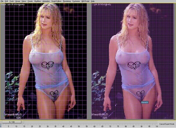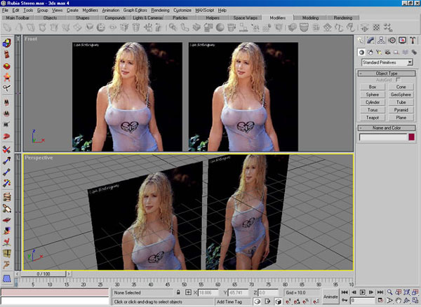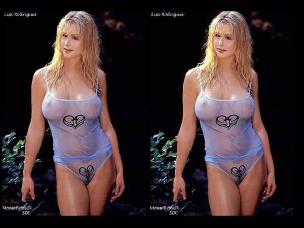 7-en la siguiente imagen vemos el resultado de lo que llevamos hasta ahora. Cruzando la mirada o usando gafas polarizas podemos ver los pechos en relieve. El resto de la fotografía permanece plana (2d).