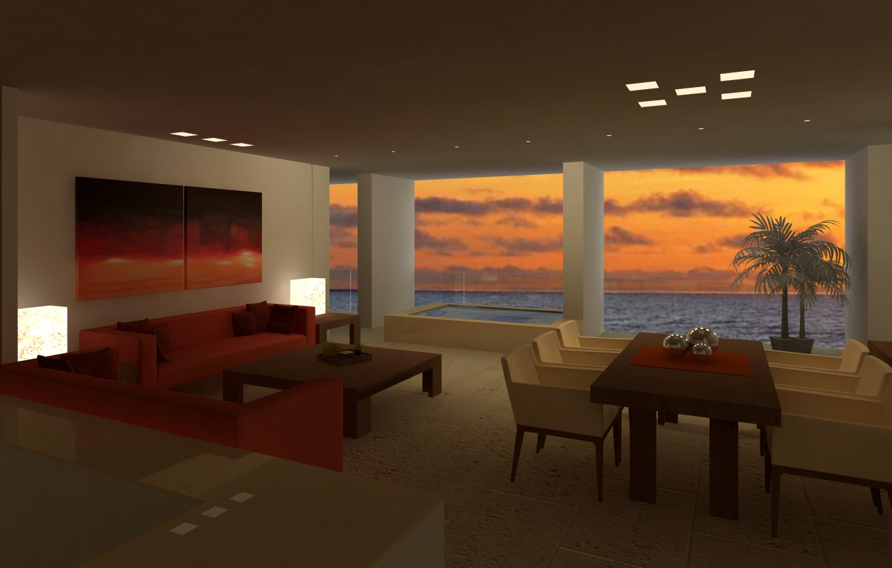 Luego, las dos lámparas que están iluminando se ven demasiado raras, con la luz que están dando o lo uliminadas la escena debería estar muy quemada y no lo está, y luego en el techo las luces que tienes, ponle un marco metálico o algo así, parecerá un poco más real. Un saludo y sigue trabajando tío.
