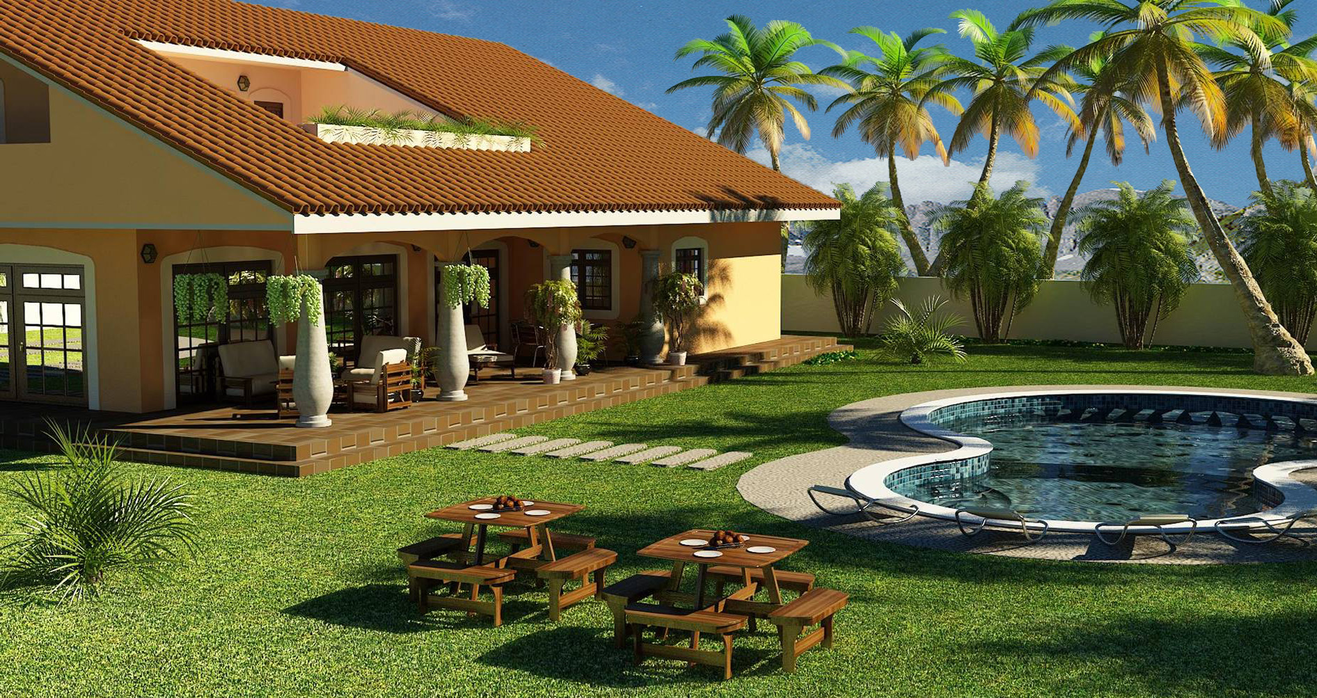 Me parecen buenos renders, si bien tengo la impresión de que en el primero se aprecia un noise general que en un principio confundí con la textura de aplicada en las paredes, pero que también se destaca en la madera de la ventana de fondo y sobre las texturas de los muebles, también tengo impresión de que de que el piso está fuera de escala, las juntas me lucen muy anchas y profundas, en la segunda imagen se agrega que los cristales de la puertas se ven muy reflexivos, me agrada cómo se ve la piscina y tu textura de grama me agrada mucho (gracias por publicar el mapa de displacement) lo que si veo es que, aun cuando colocas un fondo montañoso al background todavía se siente todo suspendido sobre el aire, quizás trabando un tramo de superficie más, allá de la límite de la pared (un tanto de espesura aquí, allá serían un buen toque). Pero bien todo esto lo menciono por comentar tu trabajo, en general se ve bien y me gusta.