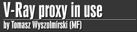 Este es un tutorial en inglés que, anda por la red, lo metí en un traductor y sale tal cómo está a continuación: Escribe o uno de nuestros usuarios pregunta de compleja explicación de Vray proxy. Hace algún tiempo he publicado un tutorial sobre el Vray 1,5, hay una parte sobre proxy y he publicado esta imagen: click. Hay alrededor de 2.333 miles de millones de polígonos. Esto es sólo una simple vista preliminar de proxy power.