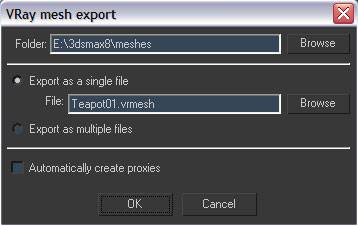 Exportar como archivo único - Al exportar 2 o más objetos de este se fusionaran en una sola Vray proxy malla.