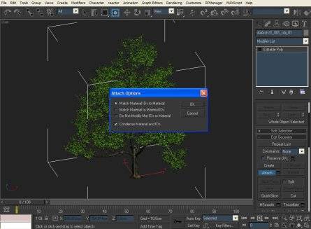 2. Ahora conecte un objeto (tronco) a las hojas. Pero recuerde a la altura del material de identificación. Esto creara un objeto material para multisub árbol.