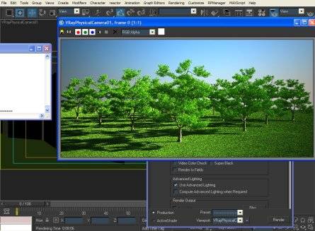 8. Aquí puede ver si hacen este árboles. Pongo aquí un plano, físico cámara y el cielo y el sol. Más información sobre esto se puede encontrar en mí último tutorial. Aquí hay un click.