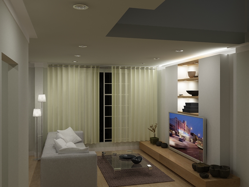 Pongo un interior de la sala del mismo proyecto, que iluminación les parece mejor.