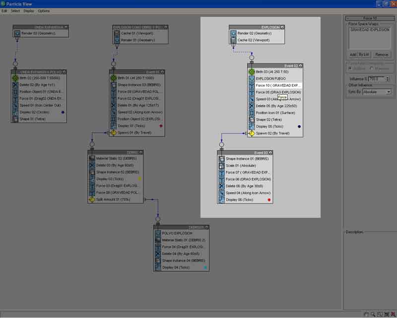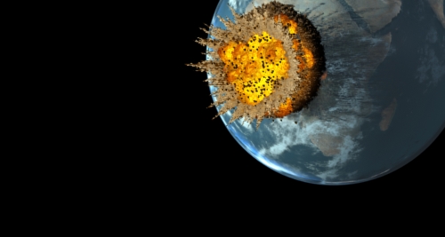 Buenas a todos. Estoy trabajando el mini reto ese del destruir la tierra del CGtalk, estoy con la explosión del meteorito, y el problema que tengo, que cuando se inicia la explosión todo bien en el momento que las partículas empiezan a morir y vuelve a caer los restos de la explosión, es decir cuando la gravedad empieza a tirar de las partículas hacia la tierramo, se quedan continuamente vibrando sin parar, es un coñazo, pero no consigo quitarlo es cuestión de script o es alguna cagada mía del Particle Flow? Saludos.