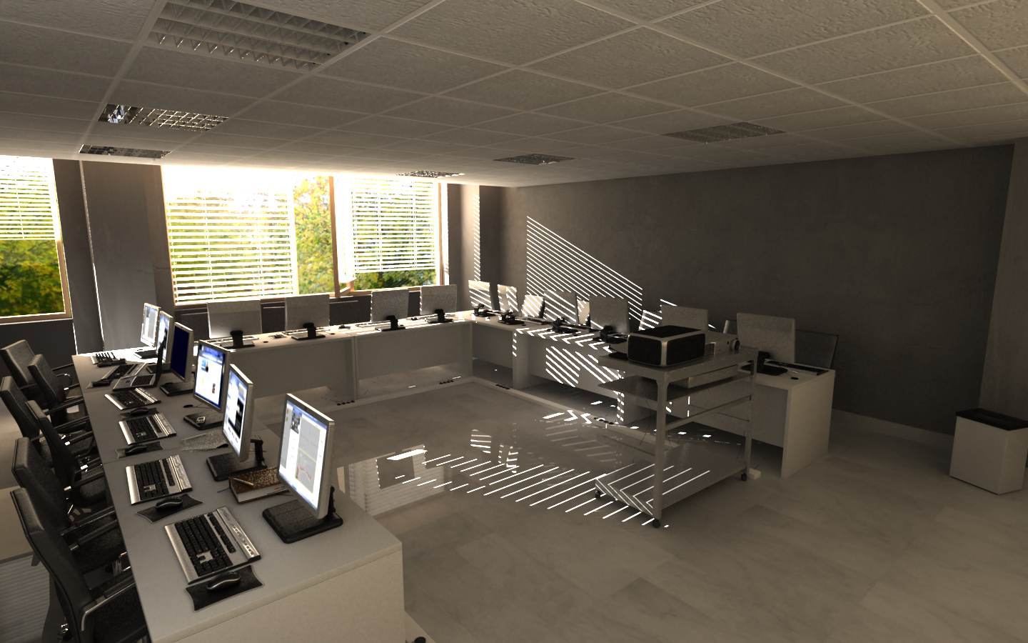 Hola a todos quería mostraros mi primer render con Vray, para que me digáis todo lo mejorable. No seáis muy duros conmigo que es lo primero que público. Os comento muchos modelos los he sacado de bibliotecas, tales como las sillas, TFT, ratones, teclados.