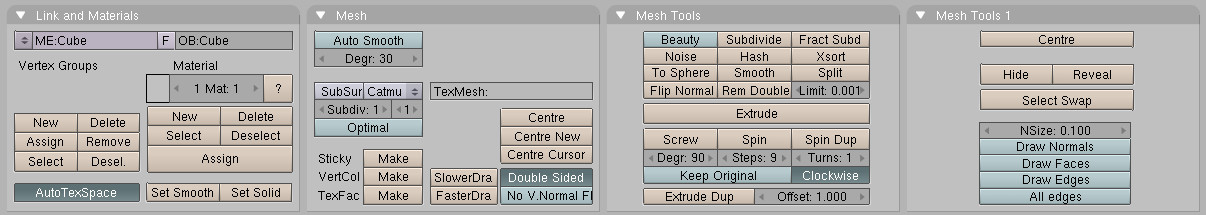 - 2.34 - Agosto de 2004 - Grandes mejoras: interacciones de partículas, mapeado LSCM UV, integración funcional de Yafray, pliegues compensados en subdivisión de superficies, sombreado de inclinación (Ramp), osa completo y muchas muchas más.