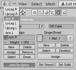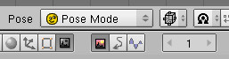 Haremos que Gus ande definiendo cuatro posturas diferentes relativas a cuatro diferentes estados de una zancada. Blender hará el trabajo de crear una animación fluida. - primero, verifique que está en el frame (imagen) 1 de la línea temporal. El número de frames aparece en un botón a la derecha de la barra de herramientas de la ventana de botones (el frame actual en la barra de herramientas de la ventana de botones.). Si no está puesto a 1, póngalo ahora.
