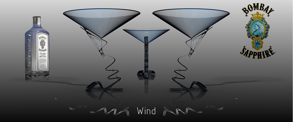 Diseño descartado para el concurso de Bombay. Está modelado y renderizado en Catia. Copa de vidrio ensartando lámina ondulada de aluminio bruñido.