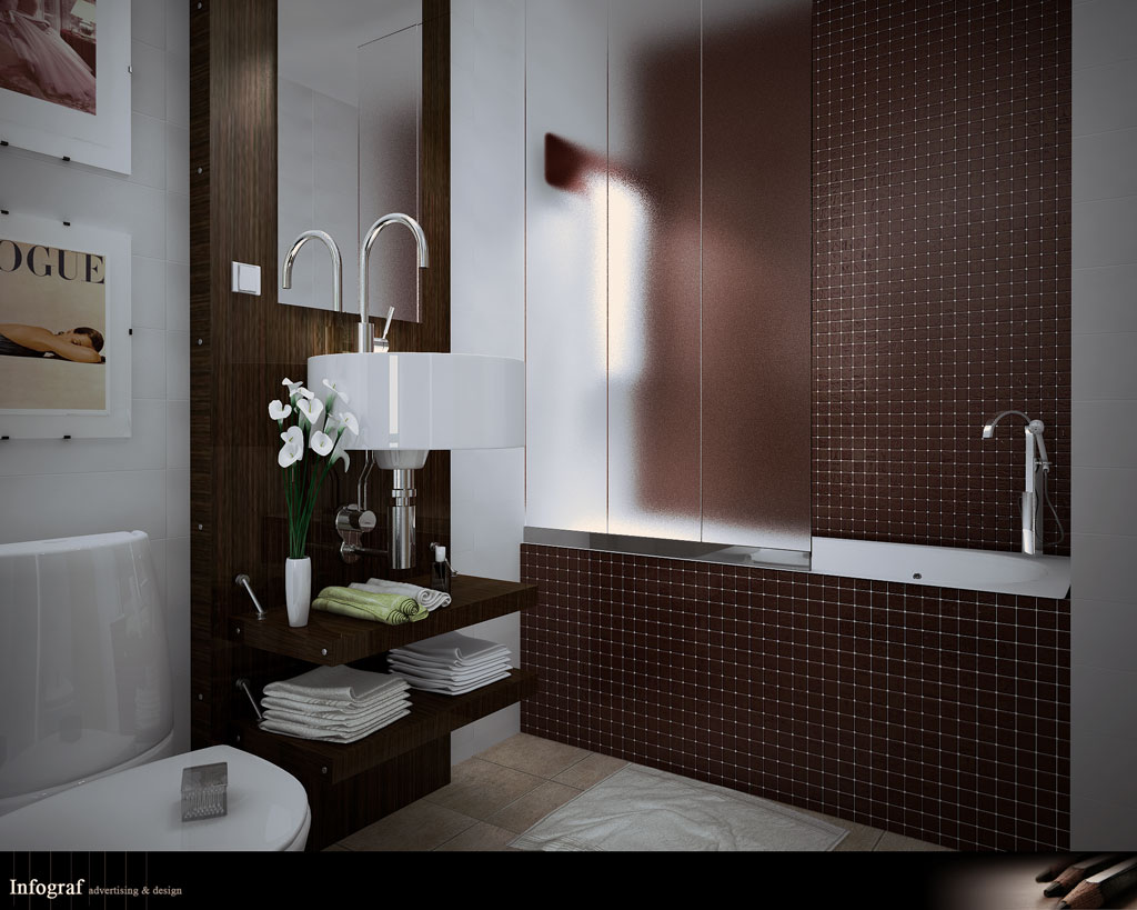 Muy buena imagen. Felicidades. La luz y los materiales están muy bien. Yo también quitaría el objeto sobre el wc, y cambiaría la toalla.