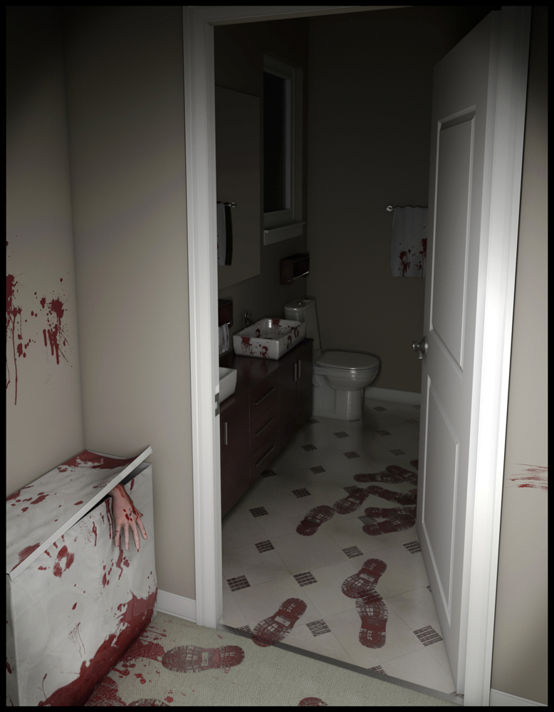 Siempre estoy haciendo render de interiores y siempre me obligan a hacer todo lo más limpio posible para el cliente, así que, se me pasó por la mente hacer algo todo lo contrario. Este rendering es de mi baño en el que alguien entró e hizo de las suyas y después tomó una fotografía usando el flash de la cámara. Ya sé que es un poco sangriento, pero por fin hago algo distinto a lo que estoy acostumbrado. Un saludo y comenten que les parece.