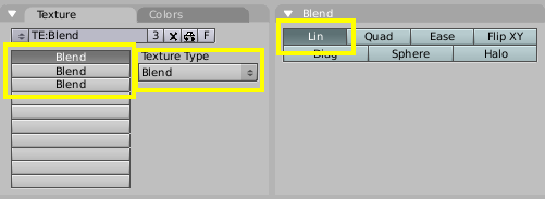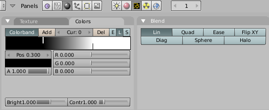 Seleccione el tipo de textura blend en los botones de textura (f6), tipo de blendsphere (esfera). Podríamos adaptar la mezcla con colorband en detalle, pero este ejemplo debería mostrar únicamente el principio.