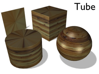 El mapeado tubular (mapeado tubular.), posiciona la textura alrededor del objeto como una etiqueta sobre una botella. Por lo tanto, la textura se ve más estirada sobre el cilindro. Este tipo de mapeado, obviamente, es muy útil para crear la etiqueta de una botella, o para poner pegatinas sobre objetos redondeados. Sin embargo, este tipo de mapeado no es cilíndrico, por lo que las tapas del cilindro no están definidas.