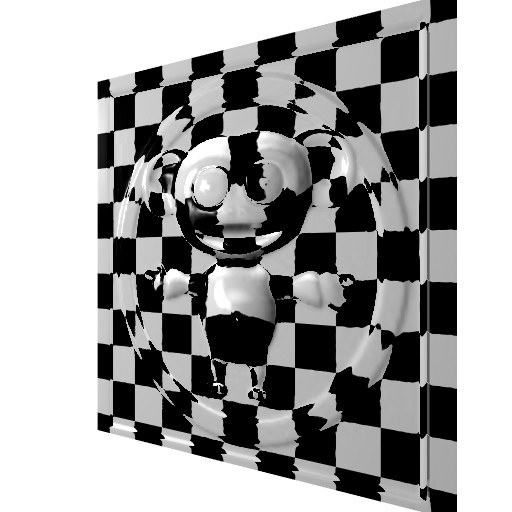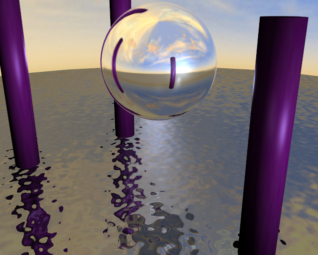 Puede verse claramente cómo el plano se pone transparente (96%) si lo observamos directamente perpendicular (efecto Fresnel simulado). Para comparación con Fresnel real (efecto Fresnel real).
