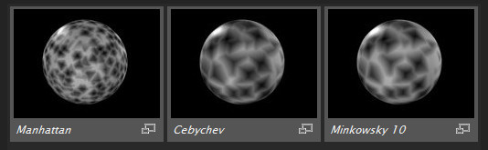 El resultado es también independiente del tipo de valor de entrada. Una textura puede llevar información de intensidad (0-255), color RGB (3 * 0-255), o vectores normales (ya sea relieve o normales reales: ver sección mapas de relieve y de normales). Algunas de las variantes se muestran a continuación.