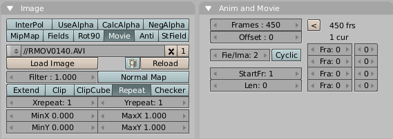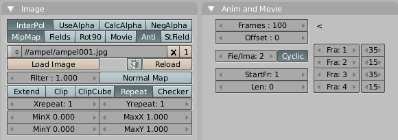 La textura de imagen es la única textura realmente 2d, es la más frecuentemente usada, y una de las texturas más avanzadas que postura Blender. Las características incorporadas, como mapeado de relieves y mapeado mip con perspectiva corregida, filtrado, y antialiasing, garantizan imágenes asombrosas (para esto hay que tener activado el botón osa, que se encuentra en displaybuttons). Debido a que las imágenes son bi-dimensionales, la forma en que la coordenada 3d es traducida a 2d se especifica en los botones de mapeado.