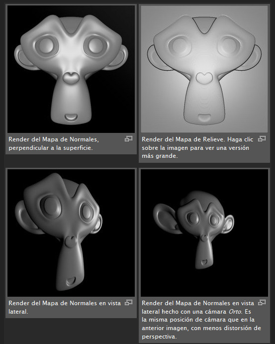 - Nor: utiliza la dirección de los vectores de normal como coordenadas. Muy útil para crear ciertos efectos especiales (ver más abajo).