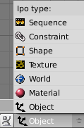 El bloque ipo en Blender es universal. No diferencia si se controla el movimiento de un objeto o la configuración del material. Una vez has aprendido a trabajar con Ipos para objetos, será obvio cómo trabajar con otros Ipos. De todas formas, Blender hace distinción entre diferentes tipos de Ipos y la interfaz lo tiene en cuenta automáticamente.