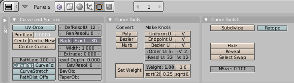 Cada curva puede ser posicionada individualmente en modo edición, o puede hacerse colectivamente. Selecciona las curvas y pulsa tab. Ahora se muestran los vértices individuales y los manejos de la curva. Los manejos de Bézier están programados tal y como aparecen en el objeto curva: