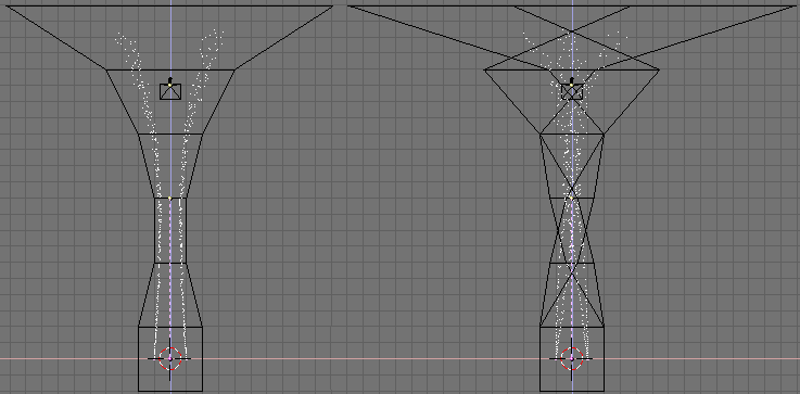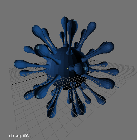 - el numbutton Norm: es usado para dar a las partículas una velocidad inicial con un valor constante (0.1), direccionado a lo largo de las normales del vértice. Para hacer esto más aleatorio puede modificar el numbutton Rand: hasta 0.1 también. Esto también hace que las partículas empiecen con una variación de velocidad aleatoria.