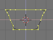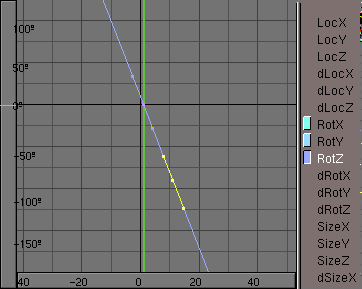 Volvamos al cuadro 1 e insertemos un keyframe de ubicación (location). Cambiemos a la vista frontal. Avancemos 10 cuadros (solo pulsa uparrow) y movamos la superficie en z algunas unidades. Insertemos un nuevo keyframe para ubicación. En la ventana ipo pondremos la curva locz en modo extrapolación (traslación ipo para la sección cruzada.).