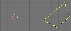 Añada un plano en el medio del círculo de piedras. Este plano será nuestro emisor de partículas. Subdivida el plano una vez. Ahora podrá mover los vértices a una posición en la madera donde las llamas (partículas) se deberían originar.