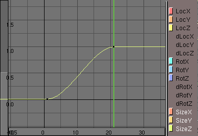Ahora, por supuesto, iremos a los botones de animación y pulsaremos dupliframes. Podremos ver cómo la superficie va ascendiendo en espiral a través del espacio 3d formando algo parecido a un resorte. Se ve lindo, pero queremos más. Desactivemos dupliframes para continuar. En el cuadro 1 escalaremos la superficie casi hasta cero e insertaremos un keyframe para size. Adelantaremos hasta el cuadro 41 y borraremos el tamaño con alt-s. Insertaremos entonces un nuevo keyframe para el tamaño. Esta ipo en particular no la pondremos en modo extrapolación ya que no queremos que se agrande hasta el infinito ¿verdad? (tamaño ipo para la sección cruzada.).
