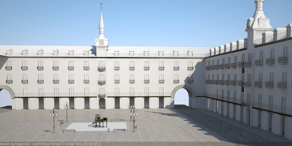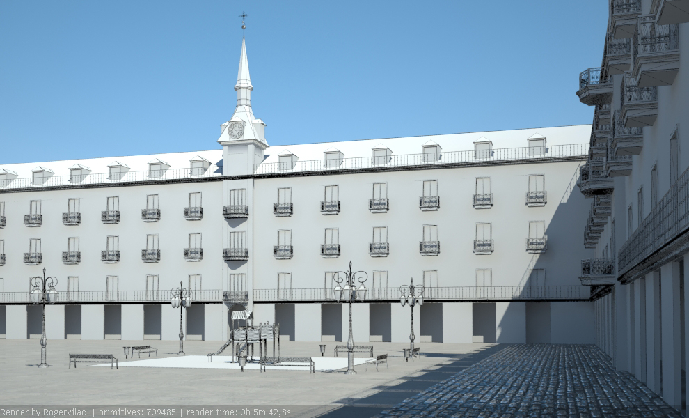 J. L. Mesa: gracias espero que el PC aguante. Que aún le falta algo de modelado, ahora parel, lamente estoy modelando el material urbano de manufactures lluçanes, papereres, bancs, pilones, jardineres que es el objetivo a presentar.