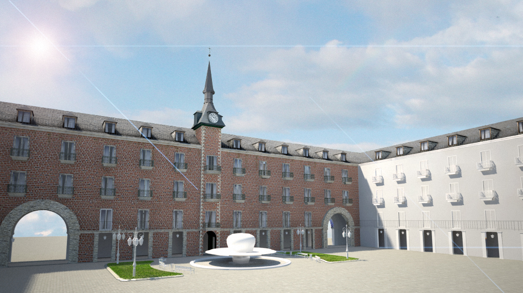Disinim: gracias por el detalle, pero al final no van a ser esos edificios la idea será basada en la plaza mayor de Madrid cómo se puede apreciar en el reloj.