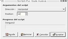 Película, vamos al menú: filtros / animaciones / reproducción. Bien, vamos a terminar nuestro paseo por Gimp viendo el menú script*fu. Este menú es una colección de scripts bastante completa, aunque existen muchos más en internet. Los scripts son pequeños programas que dan lugar a un cierto resultado, que pueden tener algo que ver con la imagen que estemos editando o no. Los scripts proporcionan al programa la posibilidad de expandirse, añadiéndole nuevas funcionalidades. En general, lo que hacen es ejecutar una sucesión de filtros y herramientas. A veces el resultado es configurable por el usuario, otras veces no. Como scripts hay muchos, y no tienen mucho en común entre ellos, vamos a ver los que me parecen más interesantes. Normalmente, el script ofrece una ventana al usuario para que pueda modificar el resultado. A los datos que aporta el usuario se les suele llamar argumentos del script. Bueno, vamos a ver algunos ejemplos. En el grupo decoración, tenemos diapositiva (fig. 45), esquinas redondeadas (fig. 46), fotografía antigua (fig. 47), entre otros.