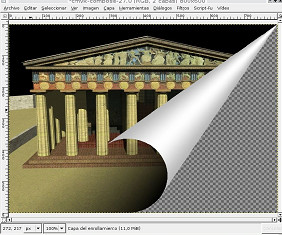 y con esto hemos terminado el menú ver. Pasamos al menú imagen. En este se encuentran las opciones para cambiar el tamaño de la imagen (escalar, girar, rotar, etc) y los cambios de modo de color de la imagen, entre otras cosas, que pasamos a ver ahora mismo. Duplicar imagen (normalmente Control + d) hace una copia idéntica de la imagen que estemos editando en una ventana nueva. Modo nos permite escoger entre color indexado, rg[b]y escala de grises. Color indexado, es un modo especial que utiliza el formato gif. Las imágenes modifican su paleta para adaptarse a una de 256 colores o inferior. Se logra que las imágenes ocupen bastante menos, pero se pierde calidad. Los gif animados son pequeñas películas, donde cada fotograma es una imagen gif. El modo rg[b](red, green, blue) es el método de color empleado por cualquier dispositivo físico basado en la luz. Es decir, monitores de ordenador, televisiones, etc. El modo de grises es el de las imágenes en blanco y negro. Es valido en cualquier sistema de impresión. Sigamos, la herramienta transformar sirve para voltear y girar las imágenes. Voltear es dar la vuelta (como una tortilla). Se puede hacer en sentido horizontal y en sentido vertical. En el primer caso lo que tenemos a la izquierda queda a la derecha, y en el segundo caso, lo que tenemos abajo, queda arriba. Desde este menú se puede también modificar el tamaño del lienzo. Es necesario diferenciar entre tamaño de imagen y tamaño de lienzo.