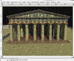 dentro de los filtros destaca el llamado gimpresionista. Es un filtro complejo, característico de Gimp. Permite aplicar efectos de textura. Es muy configurable y postura muchas posibilidades de configuración (fig 41).
