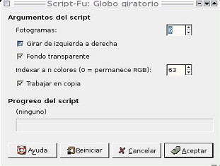 El grupo de scripts animadores es para realizar pequeñas animaciones o vídeos con nuestras imágenes. Entre estos, globo giratorio es particularmente llamativo. Mapea una esfera con nuestra imagen y hace una animación tridimensional en la cual la esfera gira sobre su eje (fig. 48 y 49).