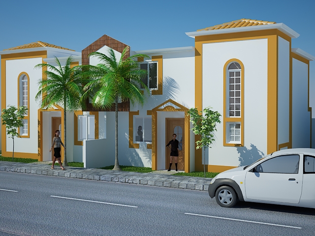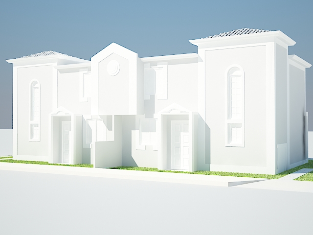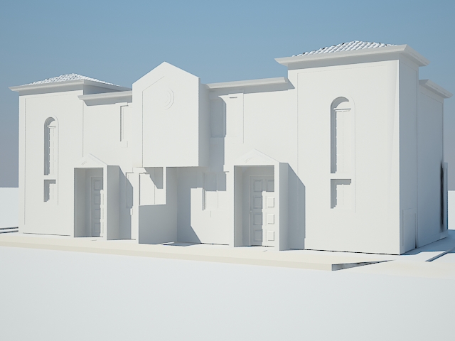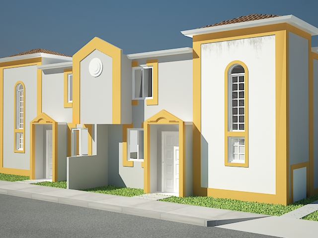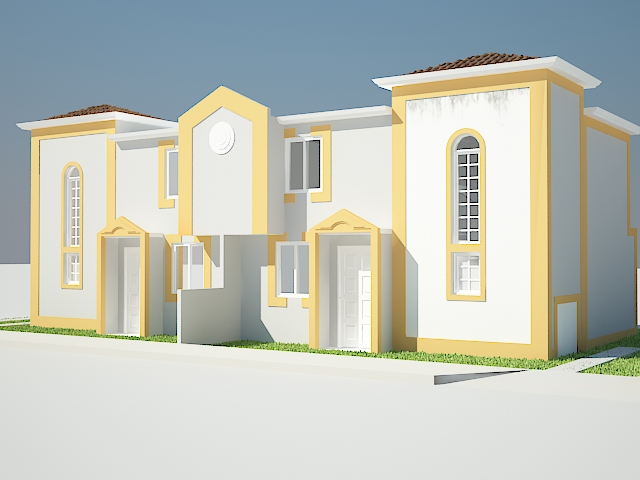 Otro pequeño avance, estoy seleccionando los materiales, y le arregle el solido del lateral que aparecía negro. Otra prueba más, cambien el material de vidrio, y material en las tejas y pasto.