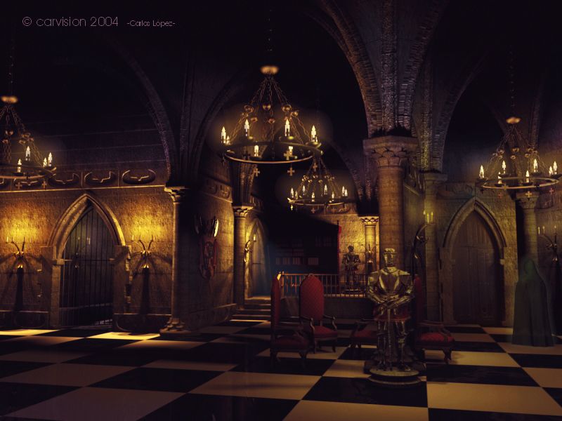 Es que a veces nos obcecamos tanto con el 3d que nos olvidamos de lo fácil e importante que es retocar en 2d, Slime, esa tonalidad me resulta más fría, pero también le subiría el contraste, el negro se ve muy gris. Por cierto carvision, algo en lo que no me había fijado antes y acabo de caer: debajo de los candelabros de la izquierda, el suelo está demasiado iluminado.