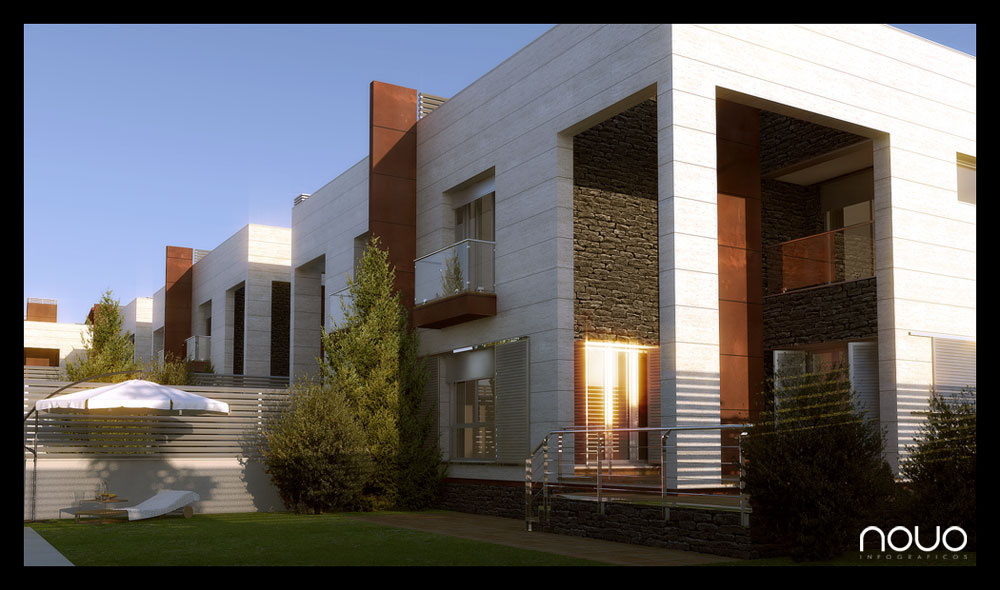 He escogido iluminaciones de atardecer porque Vray Sun + Vray Sky trabaja mejor con atardeceres. Creo que todavía no hay ningún renderizador que simule bien, bien la luz de las 12.00h, (en exteriores).