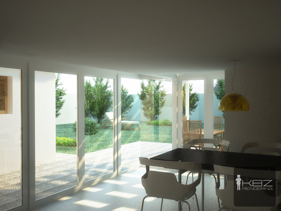 Del interior no puedo comentar mucho, pues no son muchos los que hago, pero si me ha llamado la atención de cómo has logrado equilibrar la luminosidad entre interior y exterior sin que este último se te queme, aunque pienso que el interior esta algo oscuro, por ahí si enseñas unas capturas de la configuración se agradecería. Saludos.