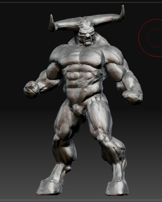 Y bueno, trasteando, he llegado a hacer la antomía y algo de la postura a mi primer figura en ZBrush, tauro, basada en una línea que estoy haciendo sobre el zodiaco. Luego ya le meteré ropa, hachas manos, etc.