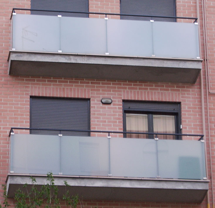 Hola. Necesito conseguir un cristal butiral. No es un cristal al ácido. En la realidad se compone de dos hojas de cristal normal unidos por una lámina de polivinilo (butiral o pvb). Es como el cristal de los bancos o de los coches, pero opaco. Se usa mucho en barandillas. Os muestro un ejemplo.
