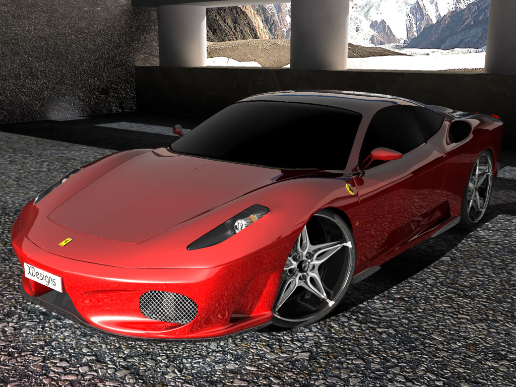 En todos los materiales de la carrocería deberías bajarle la reflexión a mi parecer se ve muy exagerada velo bjando y busca imágenes de los tonos de las pinturas, te recuero que el rojo de los Ferrari no es tan brillante y que tiene cierta tonalidad hacia el anaranjado.