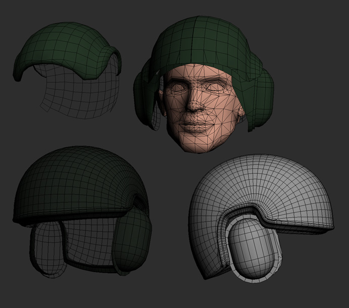 Hace tiempo estuve jugueteando con la idea de un soldado y usé como referencia ese modelo de casco que me gusta mucho. Te adjunto una muestra.