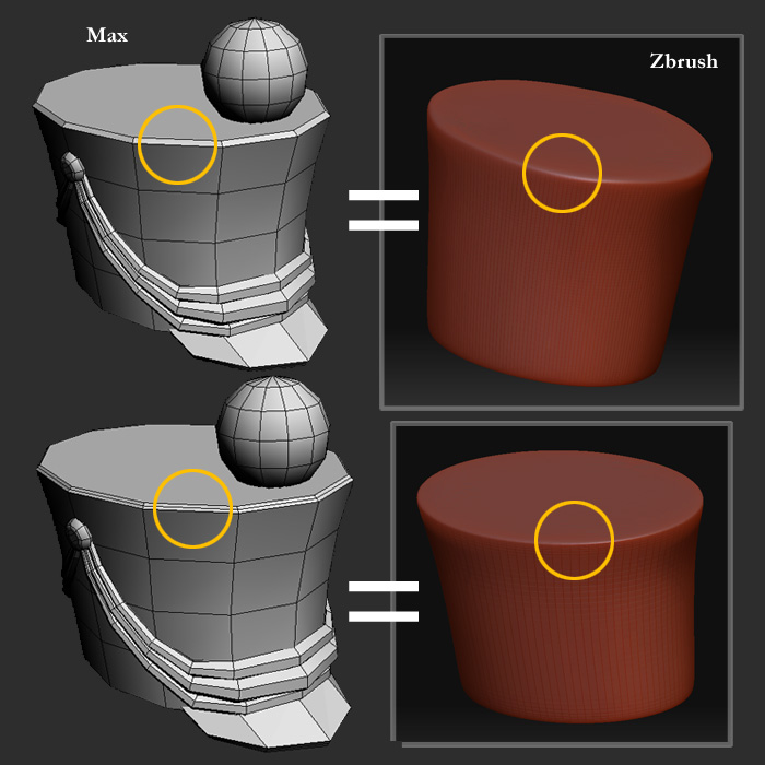 Edito: adjunto una imagen de cómo lo haría yo tradicionalmente (blender), aunque no se manejar la herramienta de crear loops de ZBrush, supongo que, se maneja igual que los demás programas.
