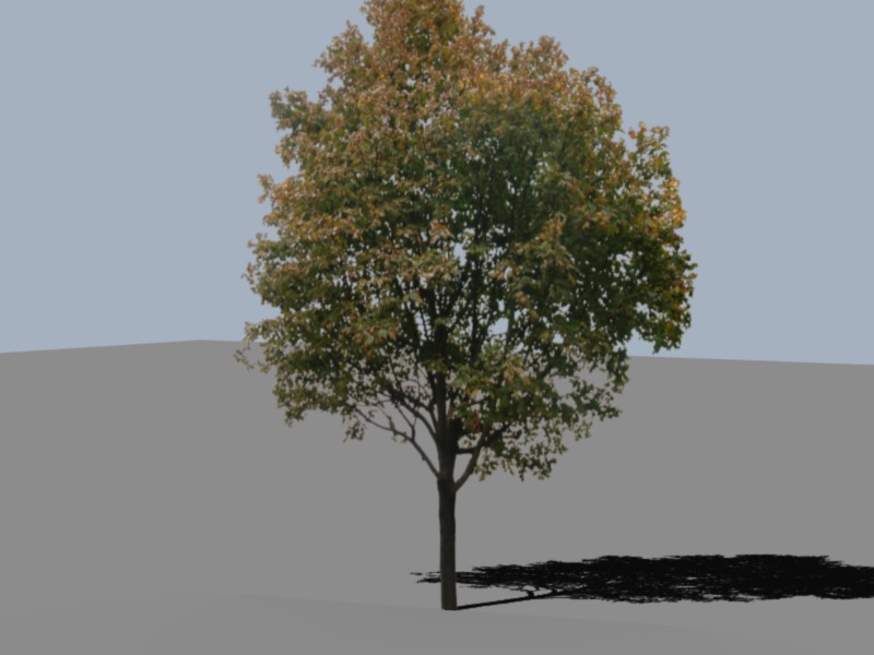 Creo un plano en Blender, le creo un material y le creo una textura de tipo imagen. Le asigno la textura de árbol con transparencia (en f6) y en la pestaña de map image pulso sobre el botón de use alpha. Si renderizo, veo enseguida que no funciona. Vuelvo a la parte de materiales (f5) y pulsa sobre ztransp en la pestaña de enlaces and pipelines. Renderizo y veo enseguida que sigue sin funcionar. Voy a la pestaña de texturas (la de la zona de materiales) y, aparte del col, selecciono alpha. Renderizo y veo que casi, pero no. Ahora bajo el alpha del material hasta cero. Y premio, aunque se ven reflejos especulares no deseados, que puedo eliminar bajando a cero el Specular de la pestaña de Shaders.
