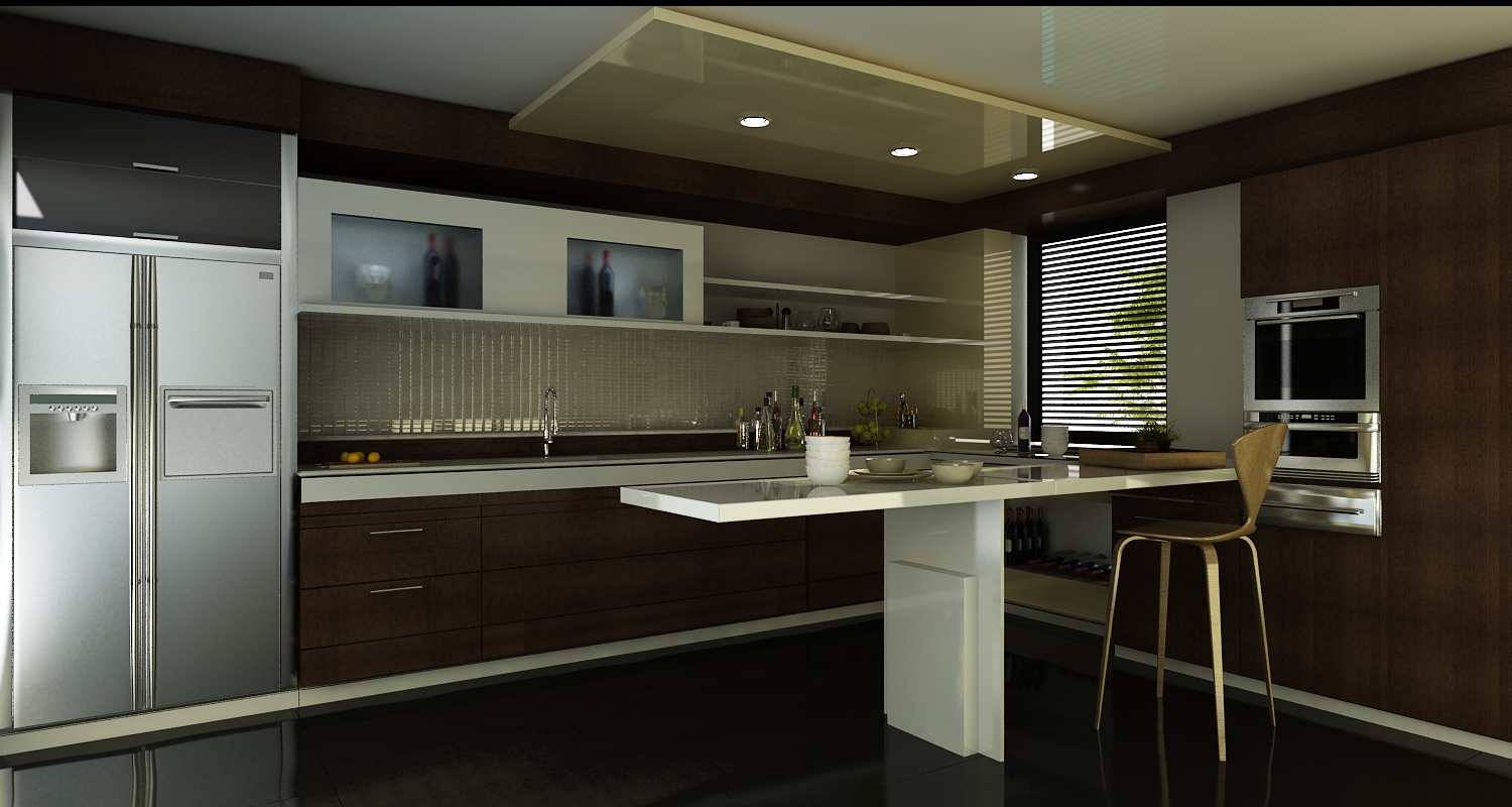 Bueno muy buen render una sola cosa la iluminación espectacular, pero como los demás an dicho demasiado oscuro. También una cosa no me acaba de convencer la especie de techo arriba de la mesa que refleja mucho, pero que queda demasiado perfecto, eso es lo único el frigorífico te quedó muy bien y esto que está sin mensaje pro.