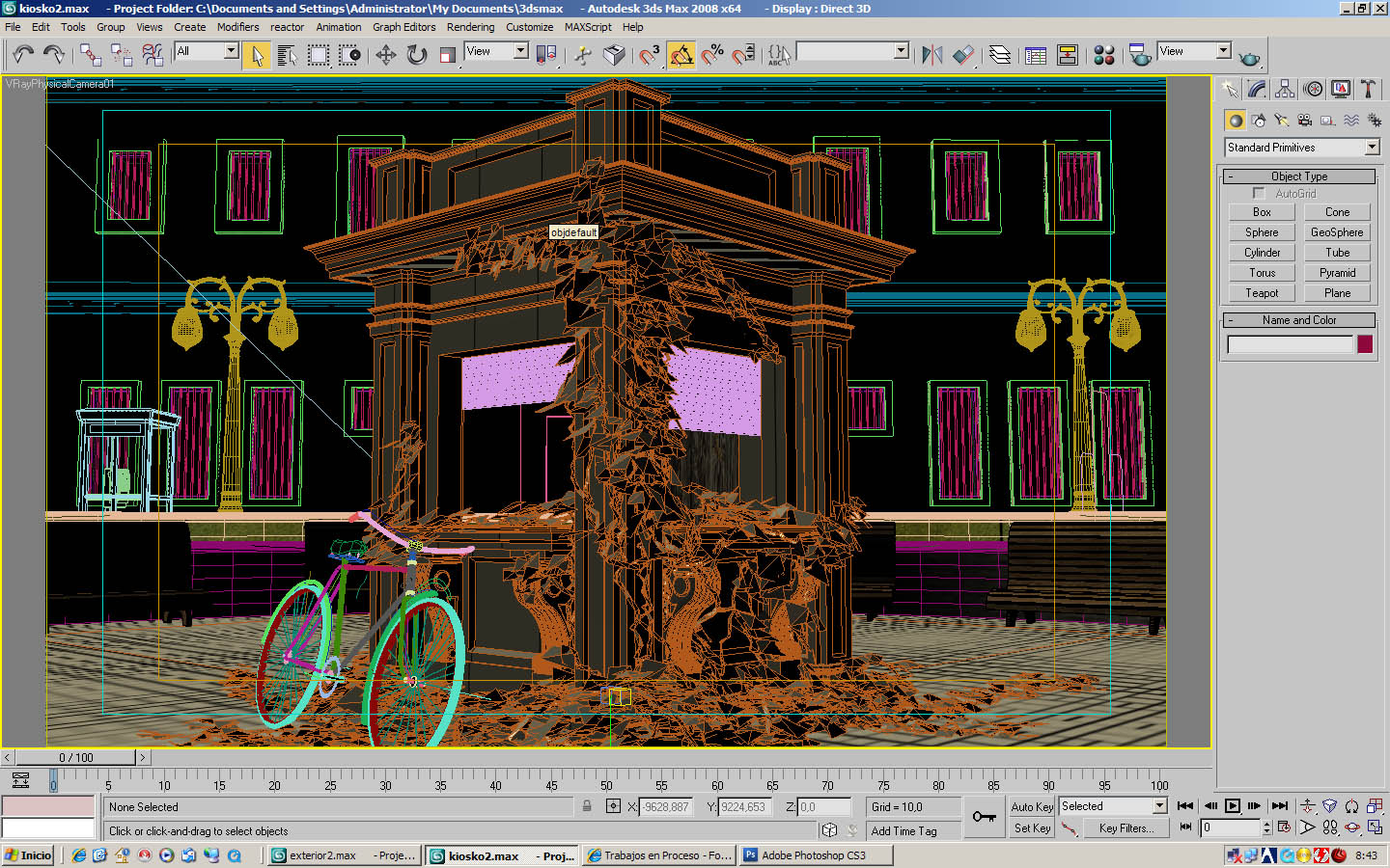 La imagen esta echa con 3dsMax 2008, Ivy y Adobe Photoshop para el desenfoque de los modelos del fondo. Tanto los bancos, como las farolas y la cabina son Evermotion por falta de tiempo, que ya iré cambiando. El edificio del fondo esta echo en plan rápido por lo mismo. Pero bueno ahí queda. Un saludo a todos.
