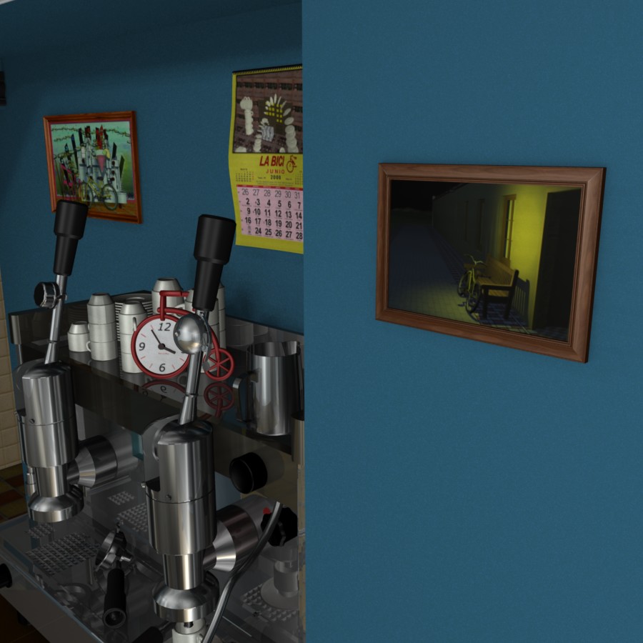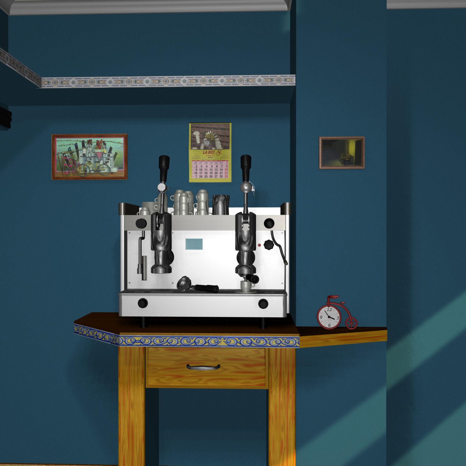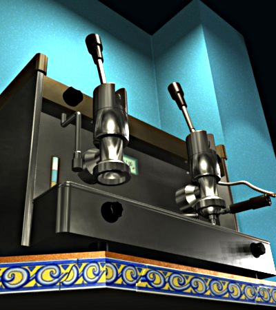 La escena trata de una cafetera, que intenta sugerir un lugar de reunión o discusión público, o de juerga. (podría ser un foro).