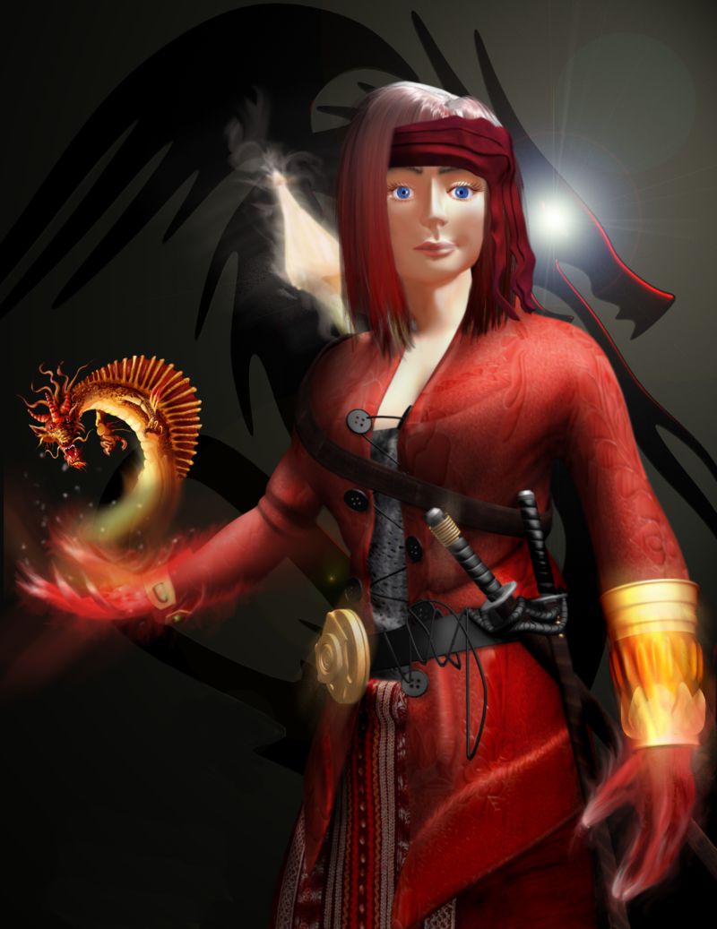 Hola, ya gracias a dios ya termine este carácter inspirado por el juego Final Fantasy el juego, el carácter es una maga roja convocando a su dragón rojo. Los programas que use fueron 3ds Max, Mental Ray para el render y Adobe Photoshop, use max para el medelado y Adobe Photoshop lo use para los efectos, blur, sombras y definición al carácter. Use direntes materiales para la ropa usando la propiedad mezcla o blend en 3ds Max. El dragón fue pintado encima de un Layout, desde la cola hasta el medio del cuerpo hice que se vea transparente para crear la illusion que viene de la mano de la maga roja. El cabello fueron 4 direntes caps para crealos y darle definición al borde del cabello. Bueno espero que le haya gustado.