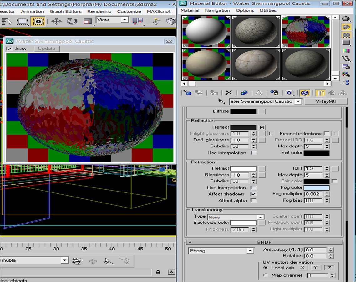 Subo una imagen de una cortina de agua que cae a un espejo de agua pero como ven me salió muy.#%, acepto sugerencias para lograr algo más digamos, real. Gracias sauldos.