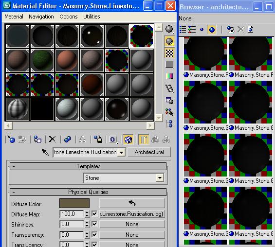 Además, de esto, cuando abro las matlibs de 3ds, los materiales muestran como vista previa una bola negra en lugar del material verdadero. Por más que al aplicar el material, este funcione, no puedo ver la preview.