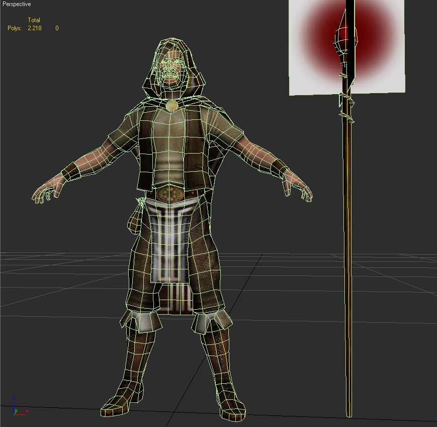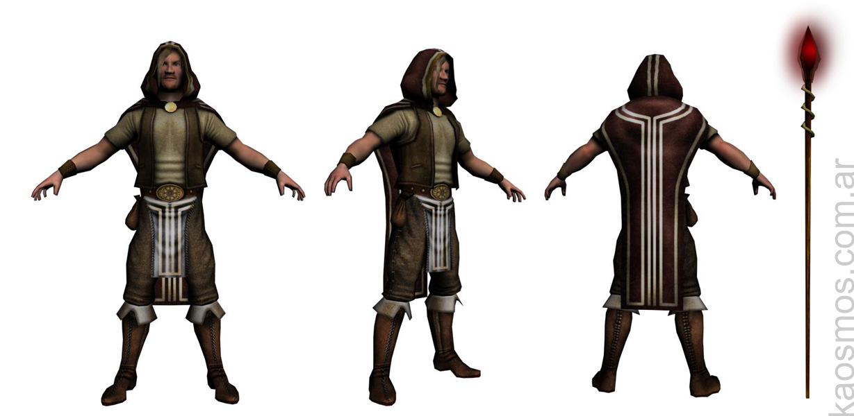 Hola. He terminado otro modelo Low poly. En este caso se trata de un mago principiante o algo por el estilo. Va para el mismo juego y con las mismas limitaciones que para el titan, un solo mapa difusse de 1024 por 1024. Sin normal ni especular. El total de polys es de 2200 que es el límite que me dieron.